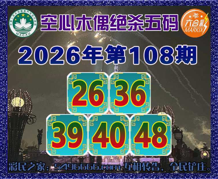 108期:〖空心木偶〗 🚡绝杀五码🚡【26.36.39.40.48】开:00准