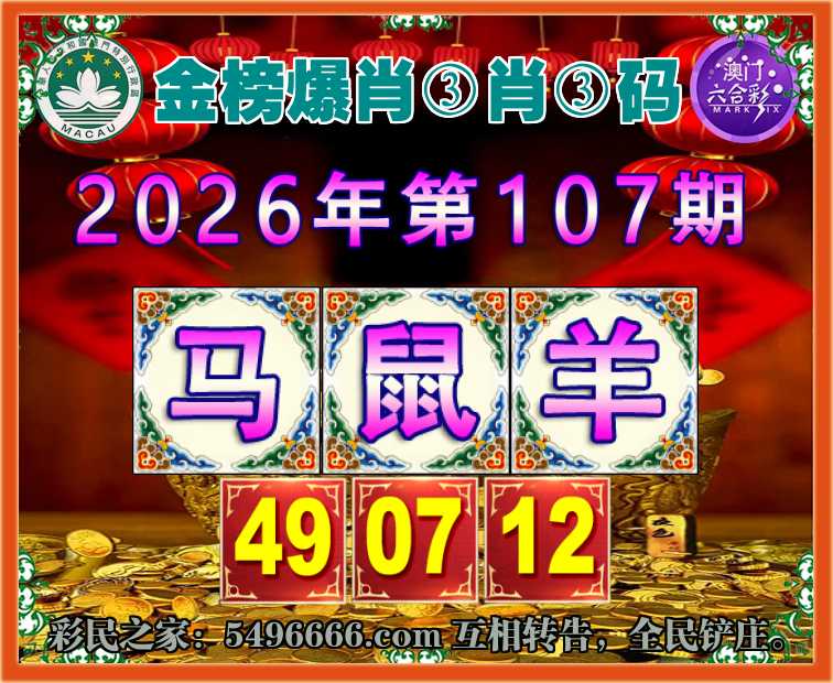 107期:【金榜爆肖】〓③肖③码〓精准爆料★