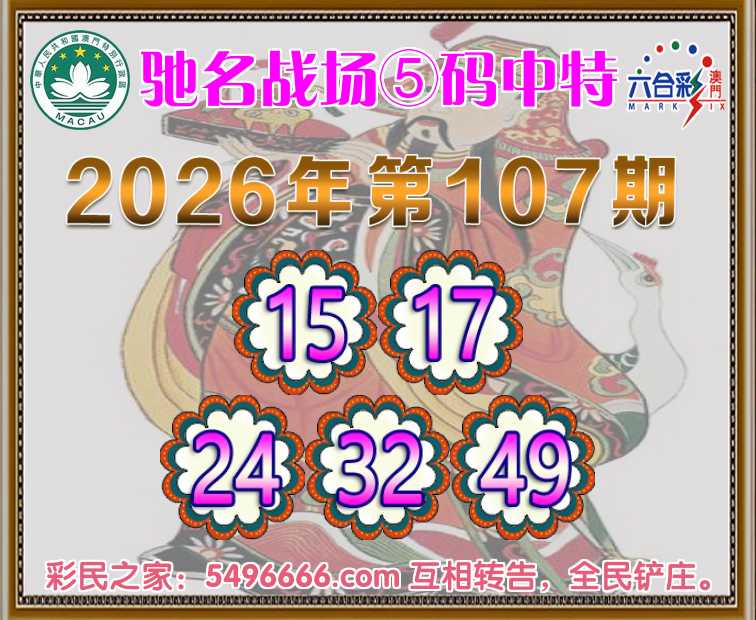 107期:【驰名战场】 🪢⑤码中特🪢【15.17.24.32.49】开:00准