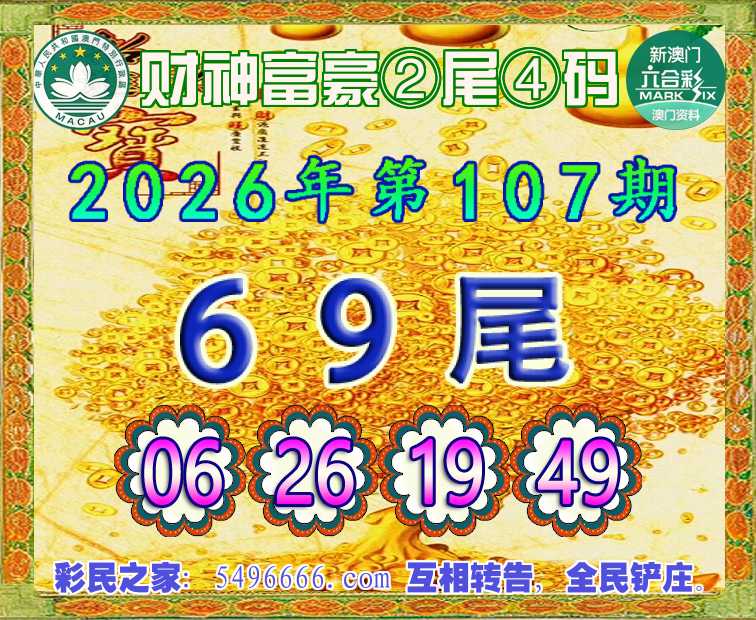 107期:【财神富豪】 🏇②尾④码🏇【69尾主:06.26.19.49】开:00准