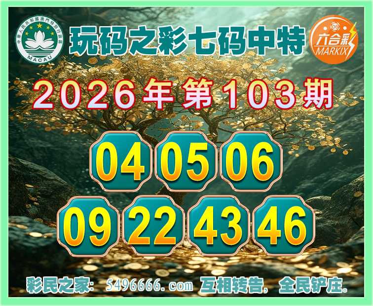 103期:【玩码之彩】 🐓七码中特🐓【04.05.06.09.22.43.46】开:06