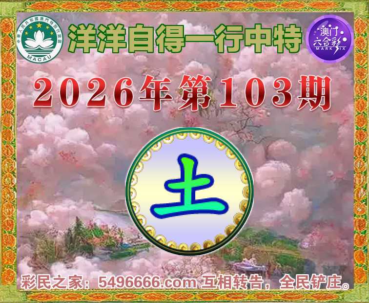 103期:【洋洋自得】 ☘️一行中特☘️【】开:土06