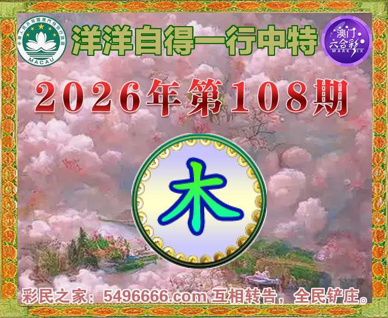 108期:【洋洋自得】 ☘️一行中特☘️【木】开:00准
