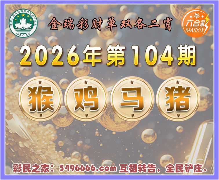 104期:『金瑞彩财』 🏵️单双各二肖🏵️【猴.鸡..猪】开:马01