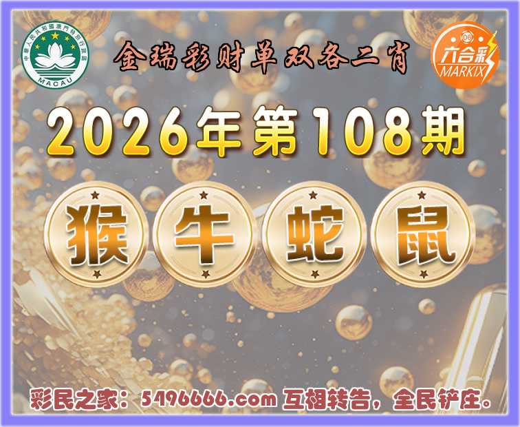 108期:『金瑞彩财』 🏵️单双各二肖🏵️【猴.牛.蛇.鼠】开:00准
