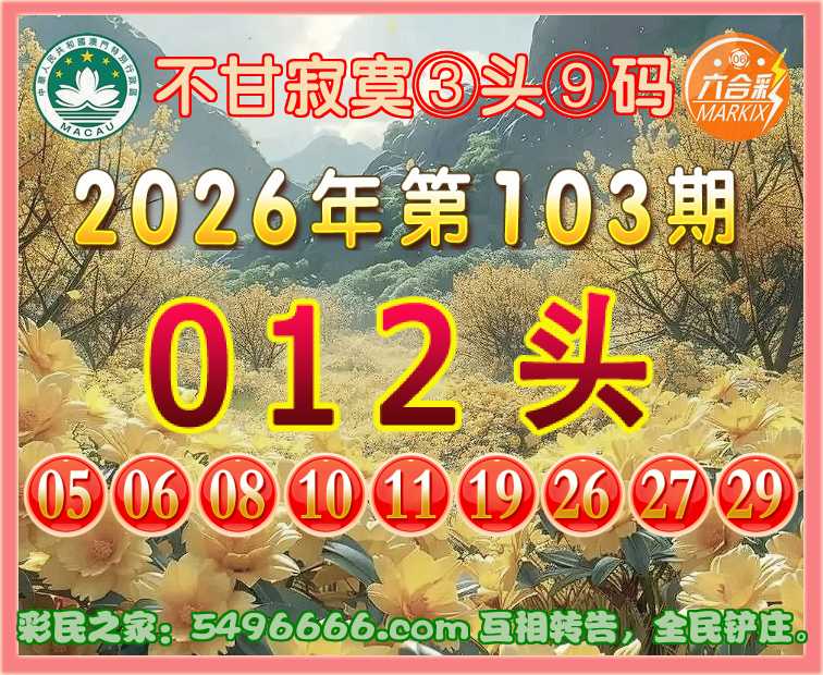 103期:『不甘寂寞』 🌲③头⑨码🌲【012头】开:牛06