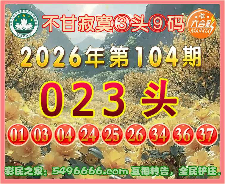 104期:『不甘寂寞』 🌲③头⑨码🌲【023头】开:马01