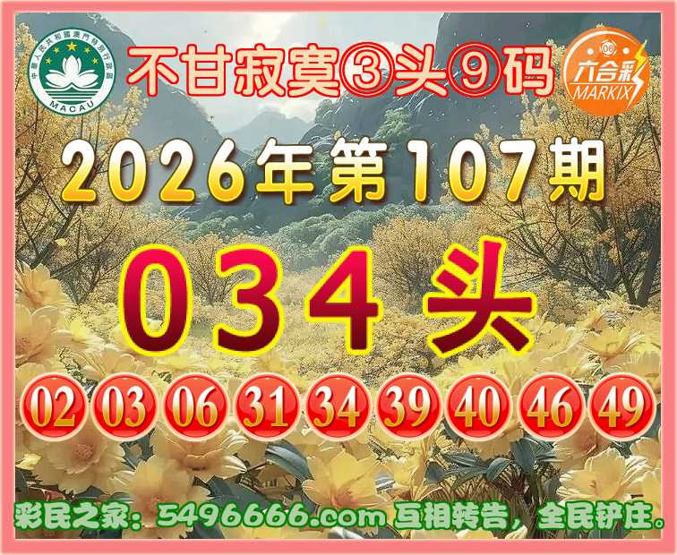 107期:『不甘寂寞』 🌲③头⑨码🌲【034头】开:马49