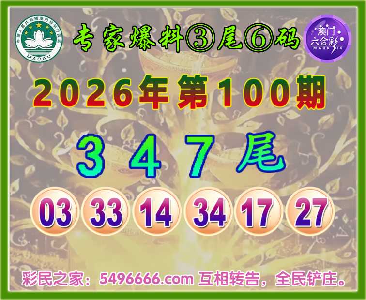 100期:『专家爆料』 🍀③尾⑥码🍀【347尾】开:33