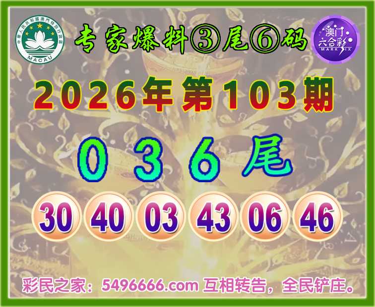 103期:『专家爆料』 🍀③尾⑥码🍀【036尾】开:06