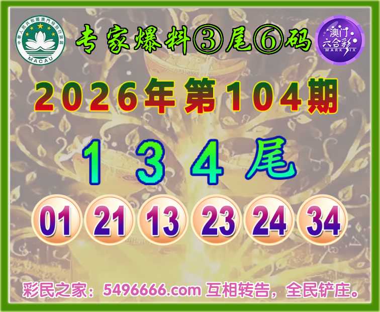 104期:『专家爆料』 🍀③尾⑥码🍀【134尾】开:01