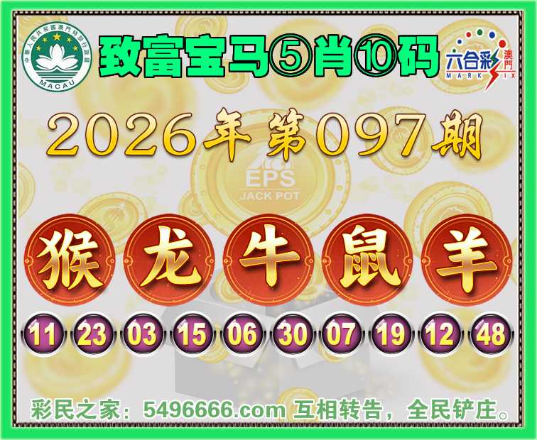 097期:【致富宝马】 🎪⑤肖⑩码🎪【龙牛鼠羊】开:猴11