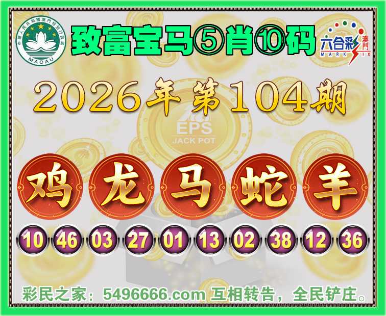 104期:【致富宝马】 🎪⑤肖⑩码🎪【鸡龙蛇羊】开:马01